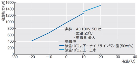 ※液温0℃以下での冷却能力値は、循環液がエチレングリコール60%の場合です。