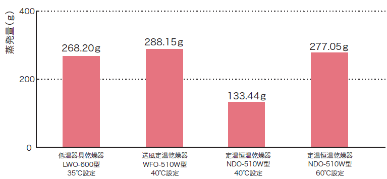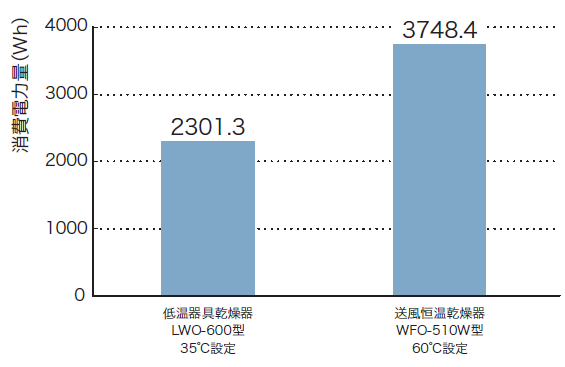 器具乾燥 比較(LWO-600型とWFO-510W型)